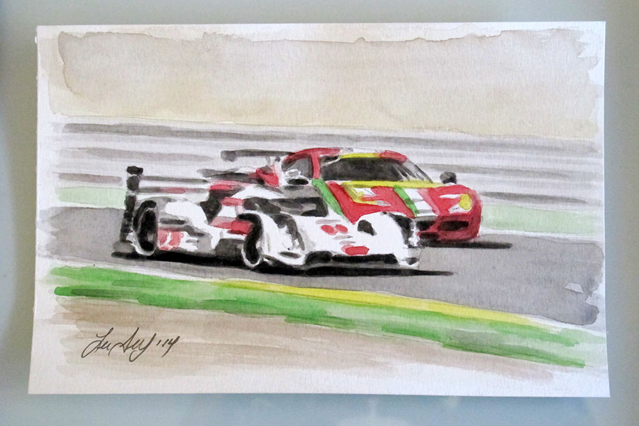 Above the GT 911 Porsche. 2014 Le Mans 24 hr