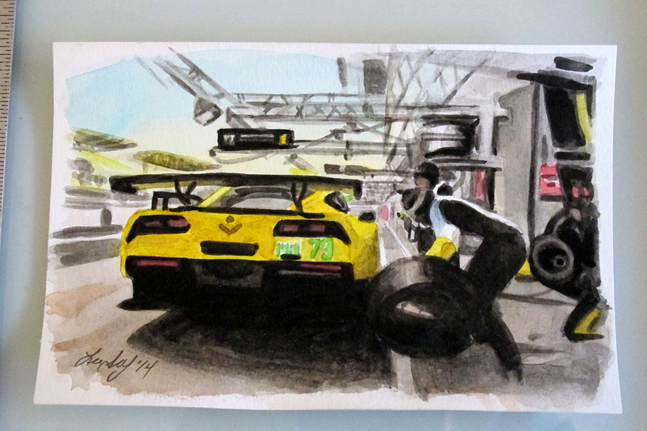 Sunday morning pitstop for the Corvette. 2014 Le Mans 24 hr