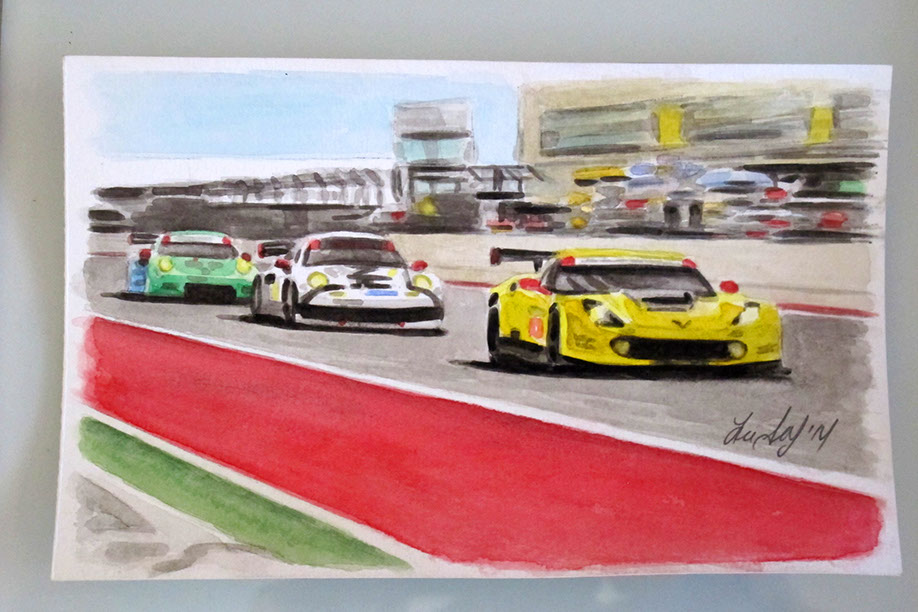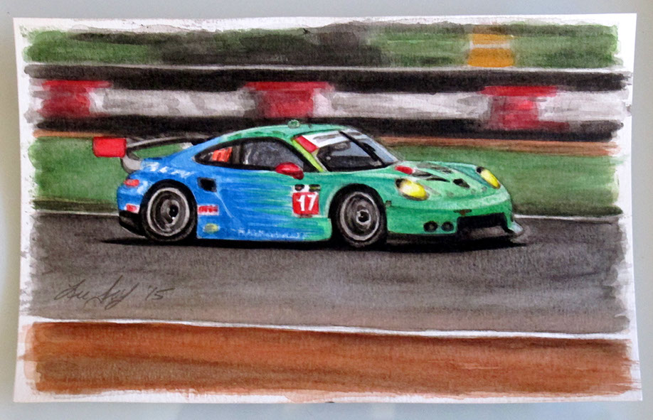 GTLM Porsche 911 around the tower.
